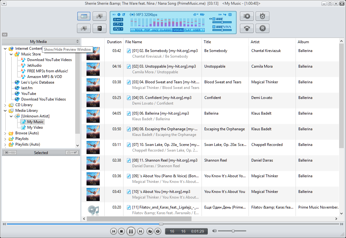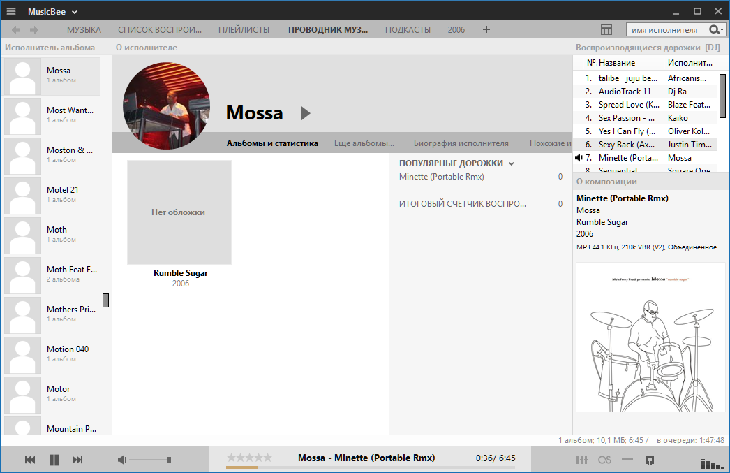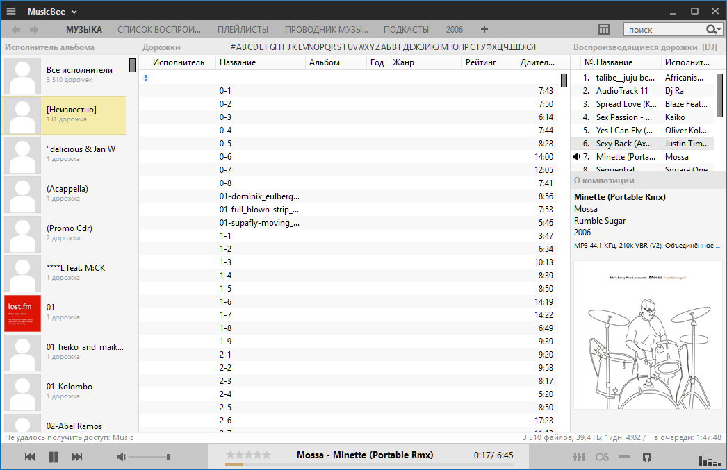 В программе мне нравится возможность заполнения недостающих mp3tag – проигрыватель сам загружает из Сети сведения о названии треке и альбоме.